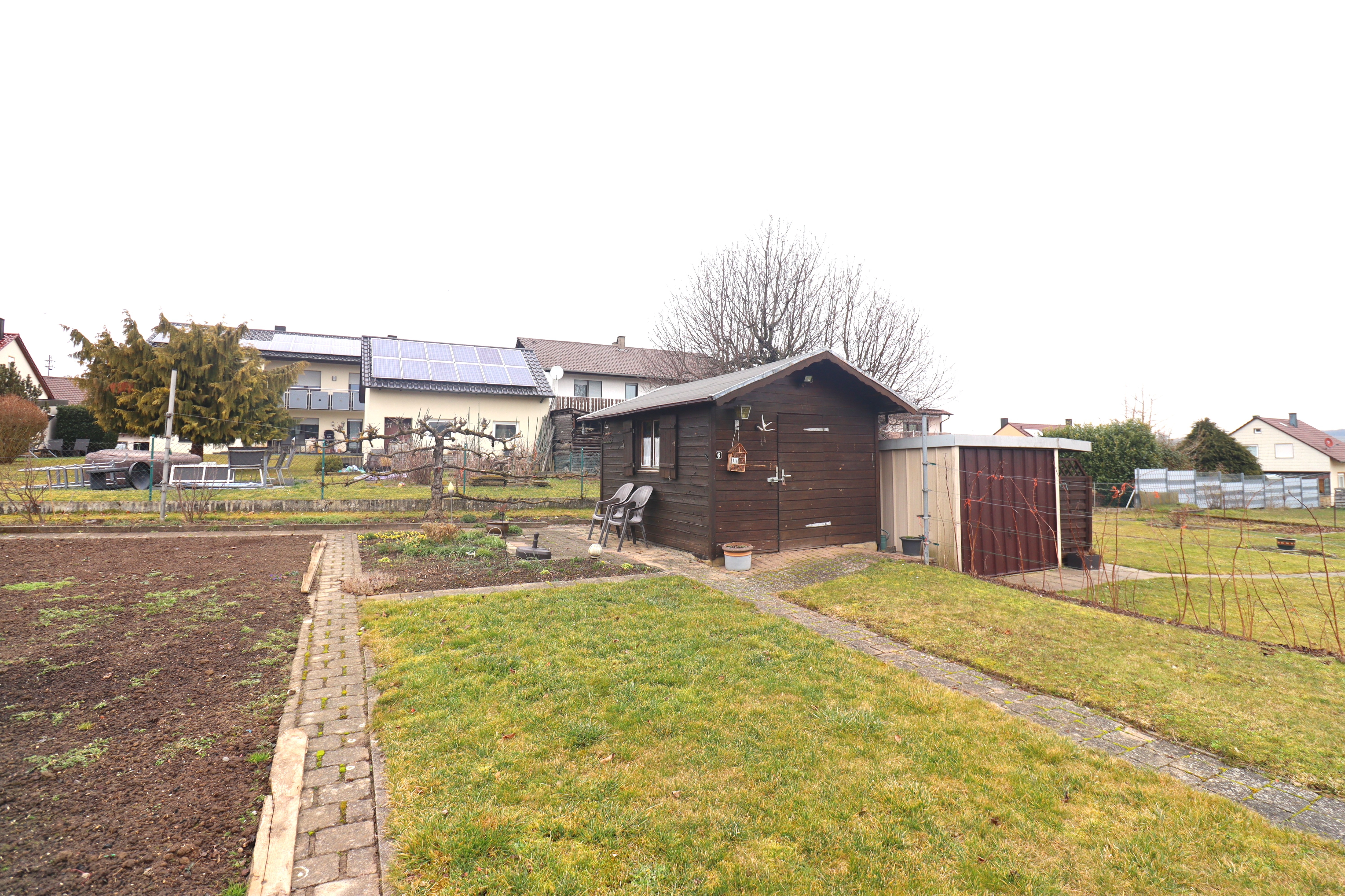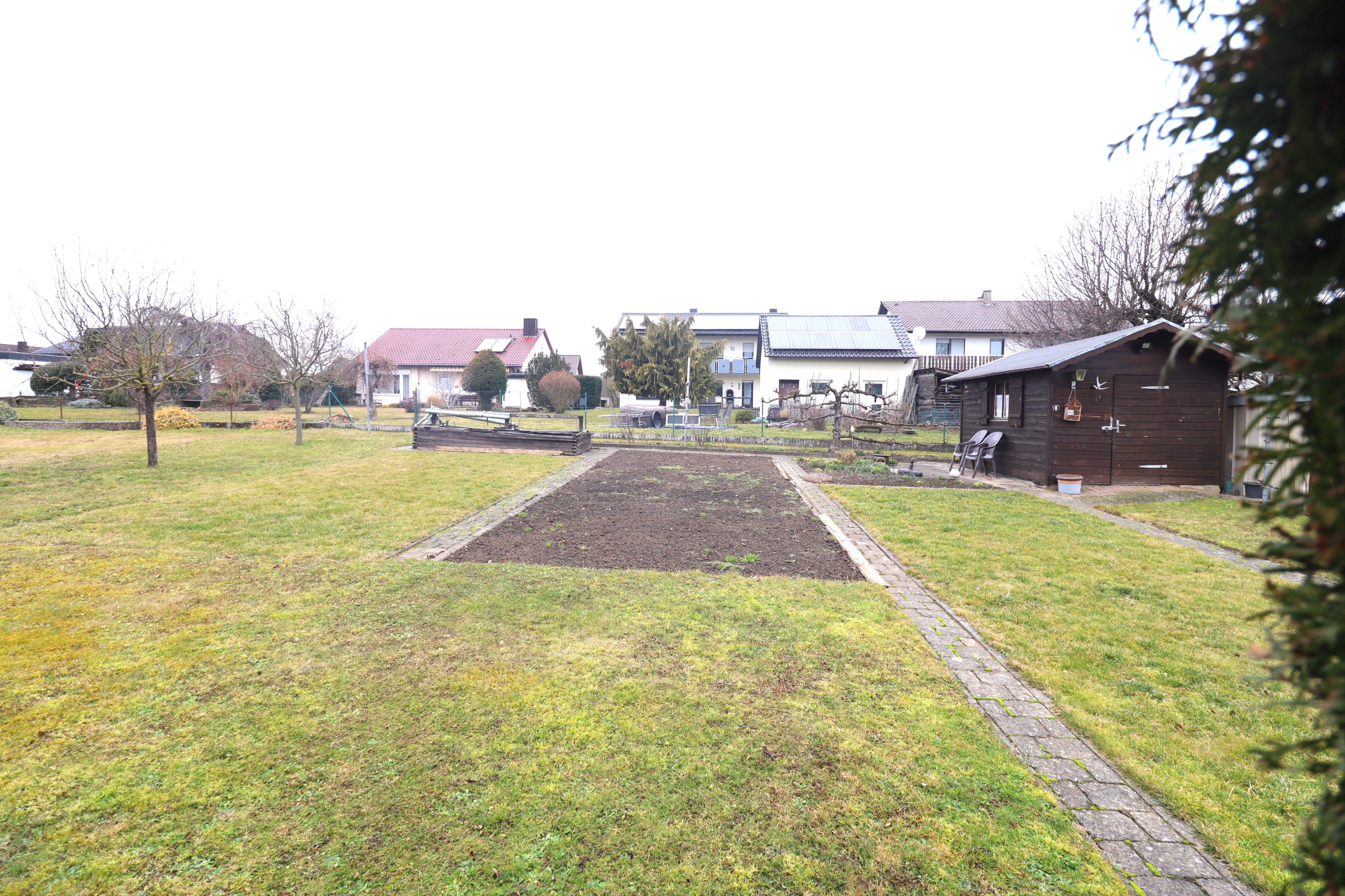 Das 976 m² große Grundstück bietet viel Platz und Privatsphäre. Ein Gartenhäuschen ist vorhanden. Der Garten ist großzügig und vielseitig nutzbar – ideal z. B. als Spielbereich für Kinder, für einen Gemüsegarten oder zur individuellen Gartengestaltung.