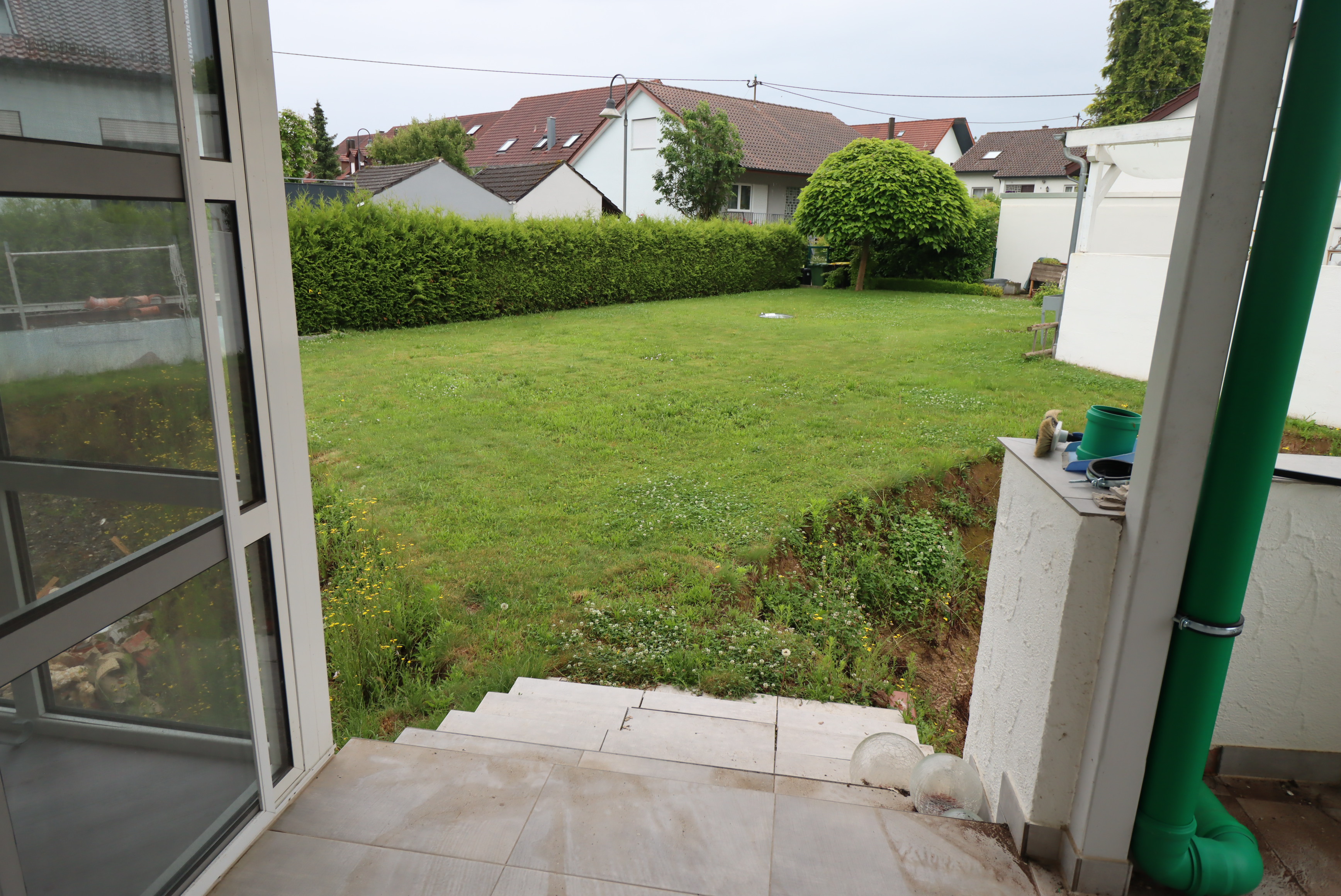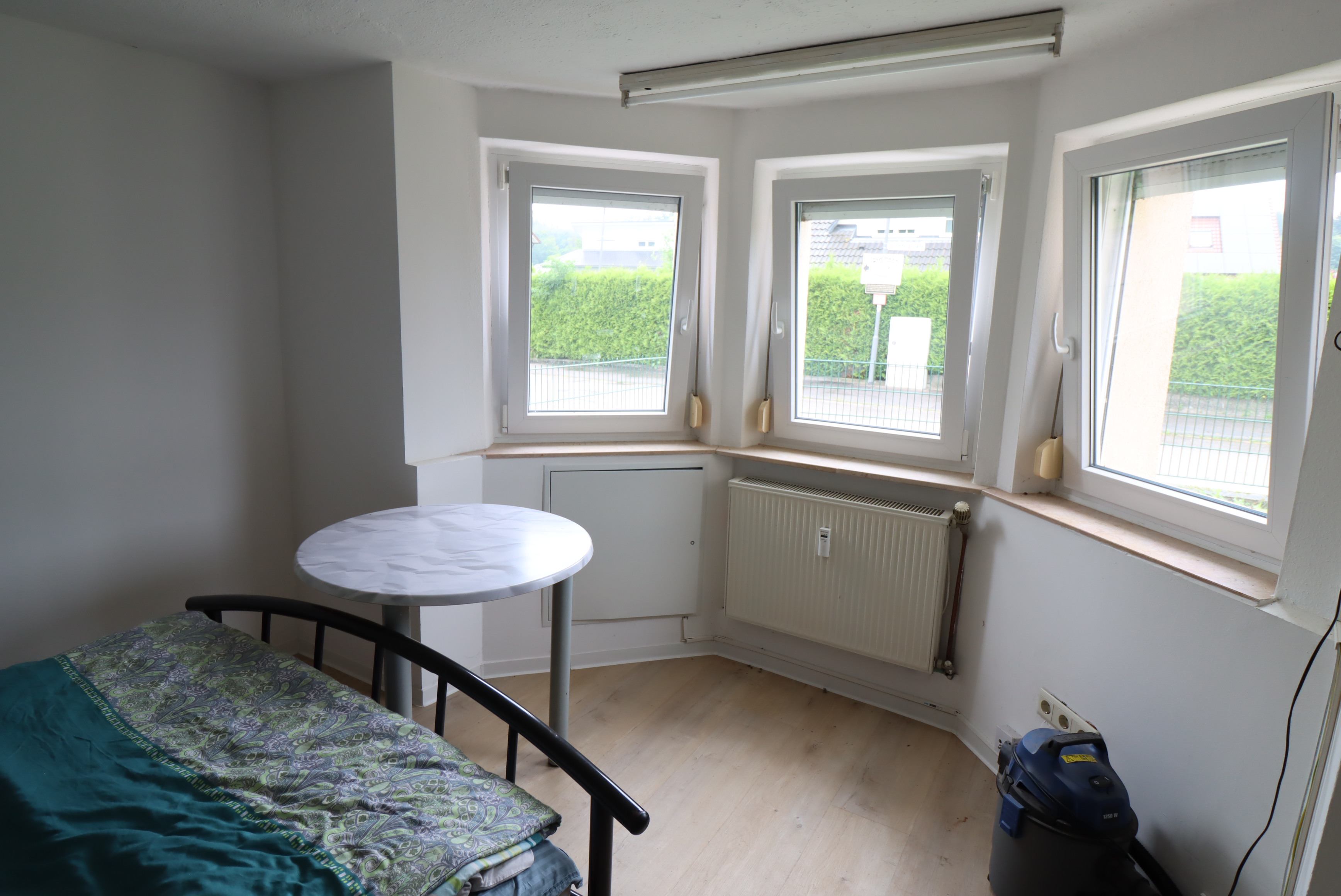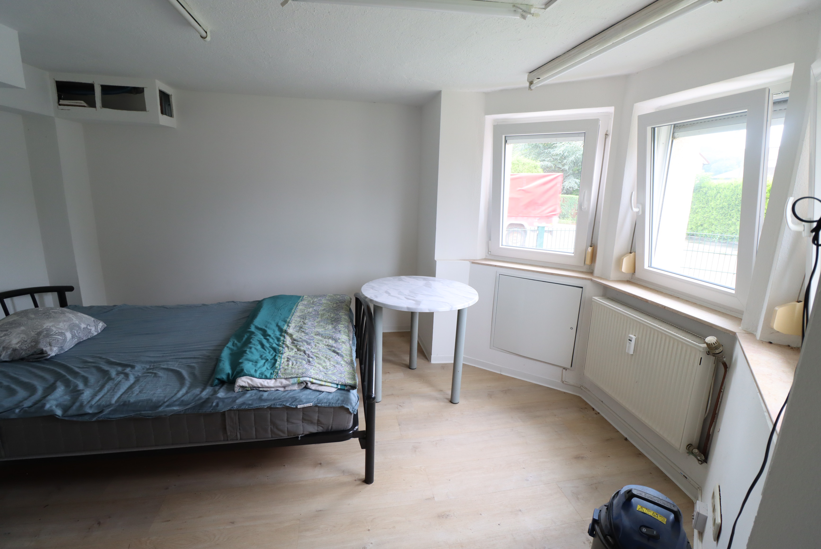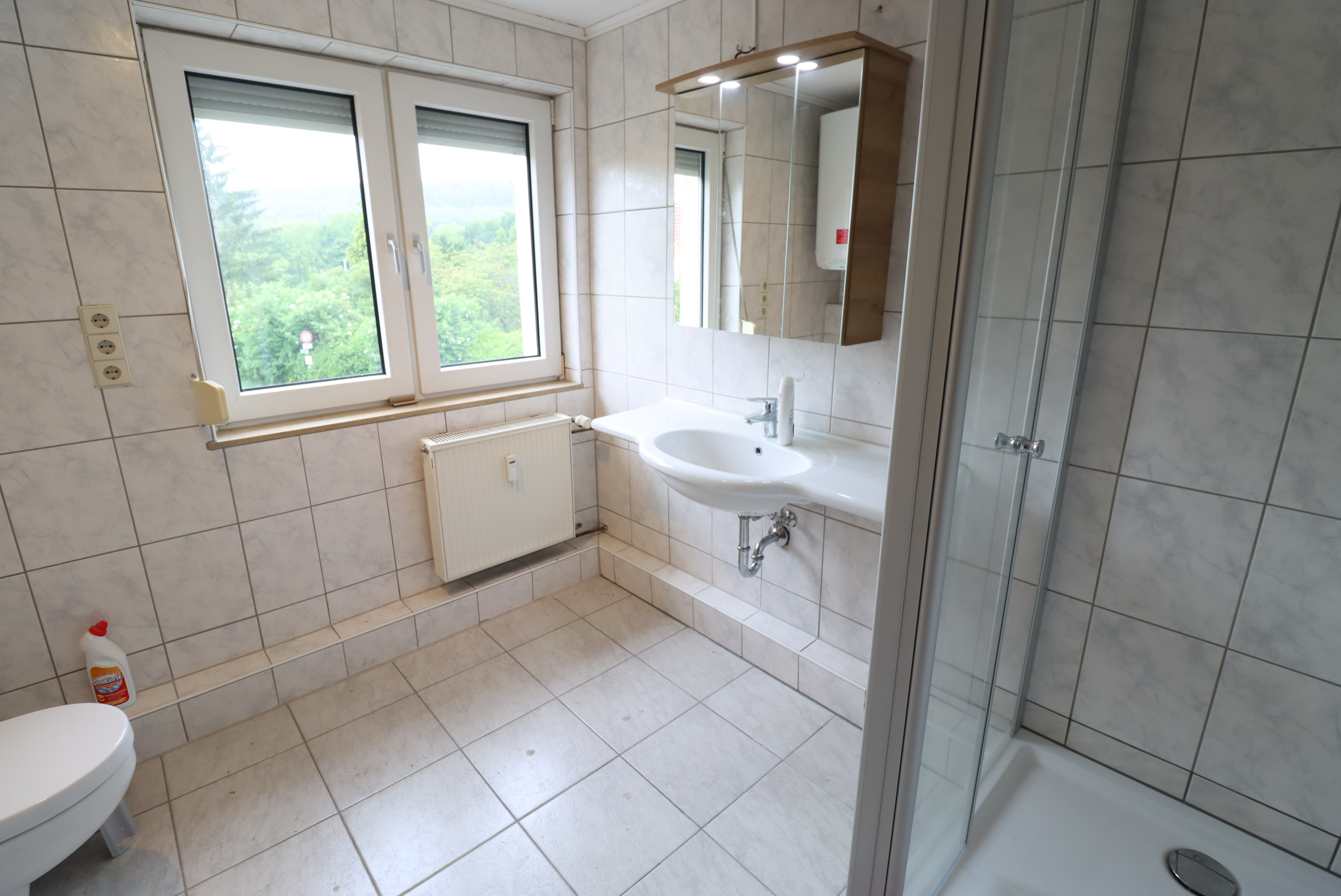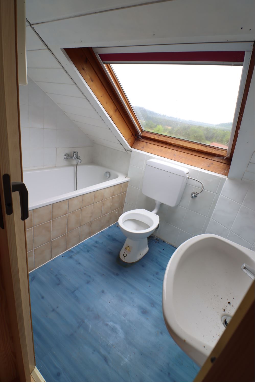 – Obergeschoss renovierungsbedürftig, jedoch mit Intakten Strom und Wasserleitungen. Terrasse im OG ist undicht und bedarf dringend Saniert zu werden.