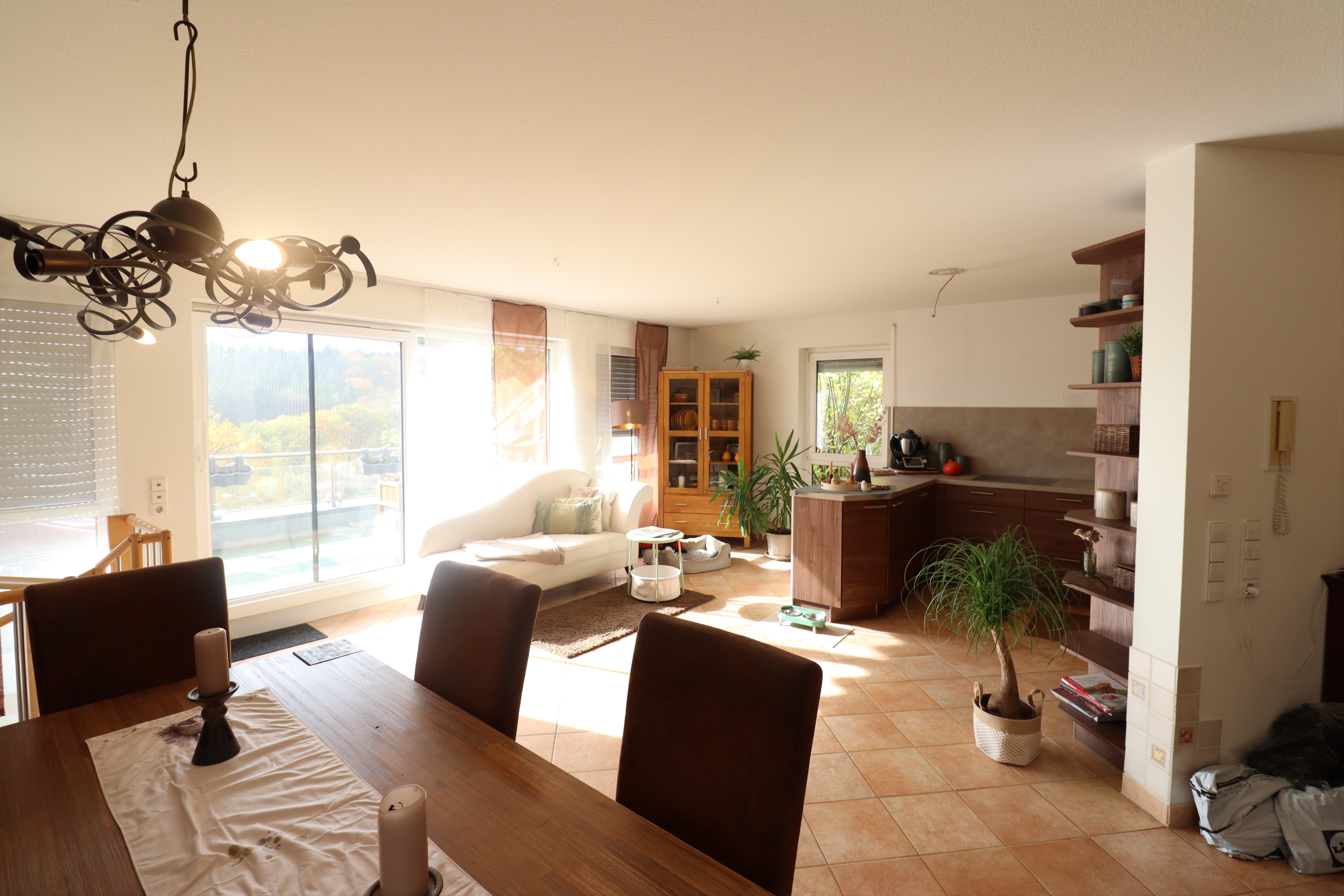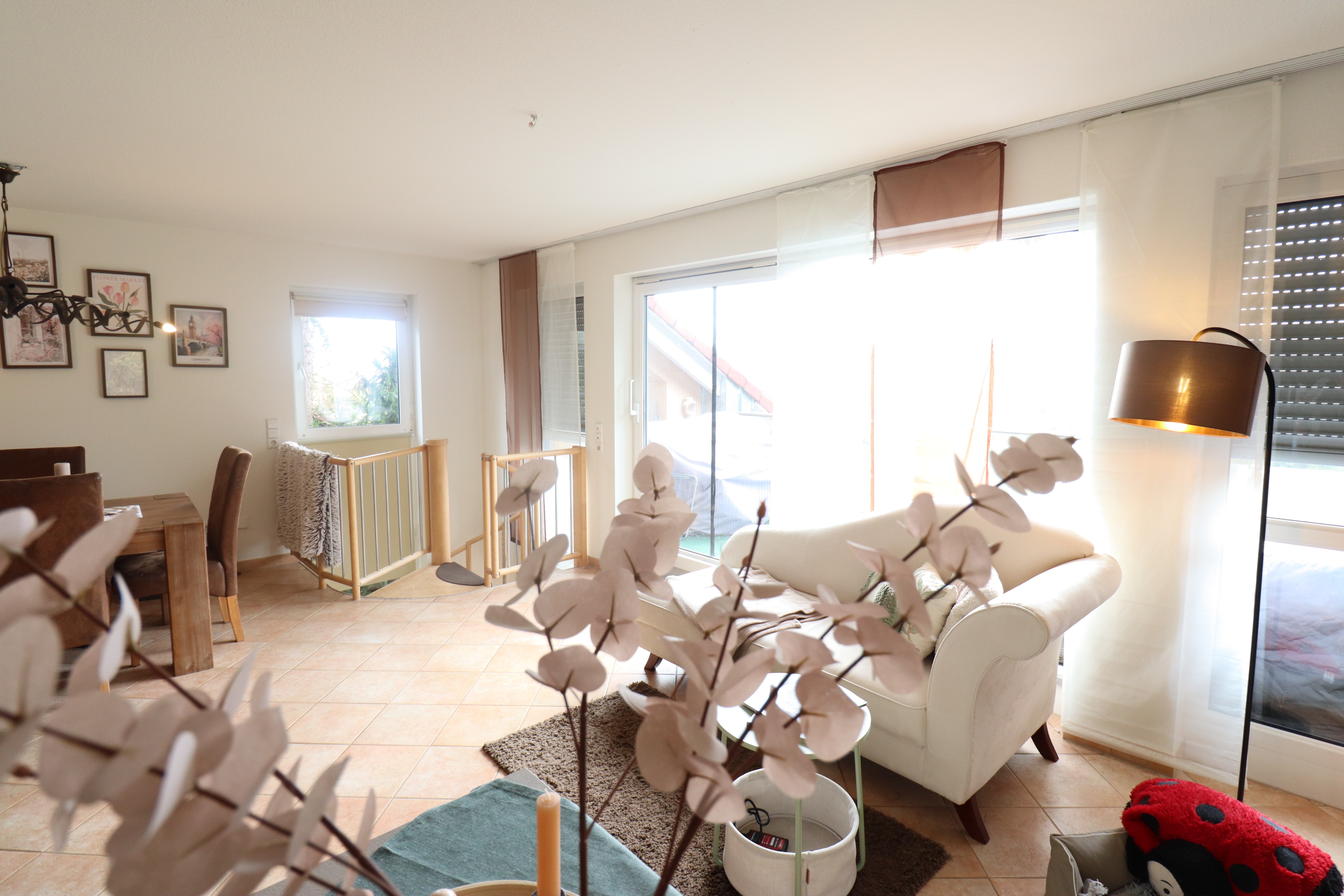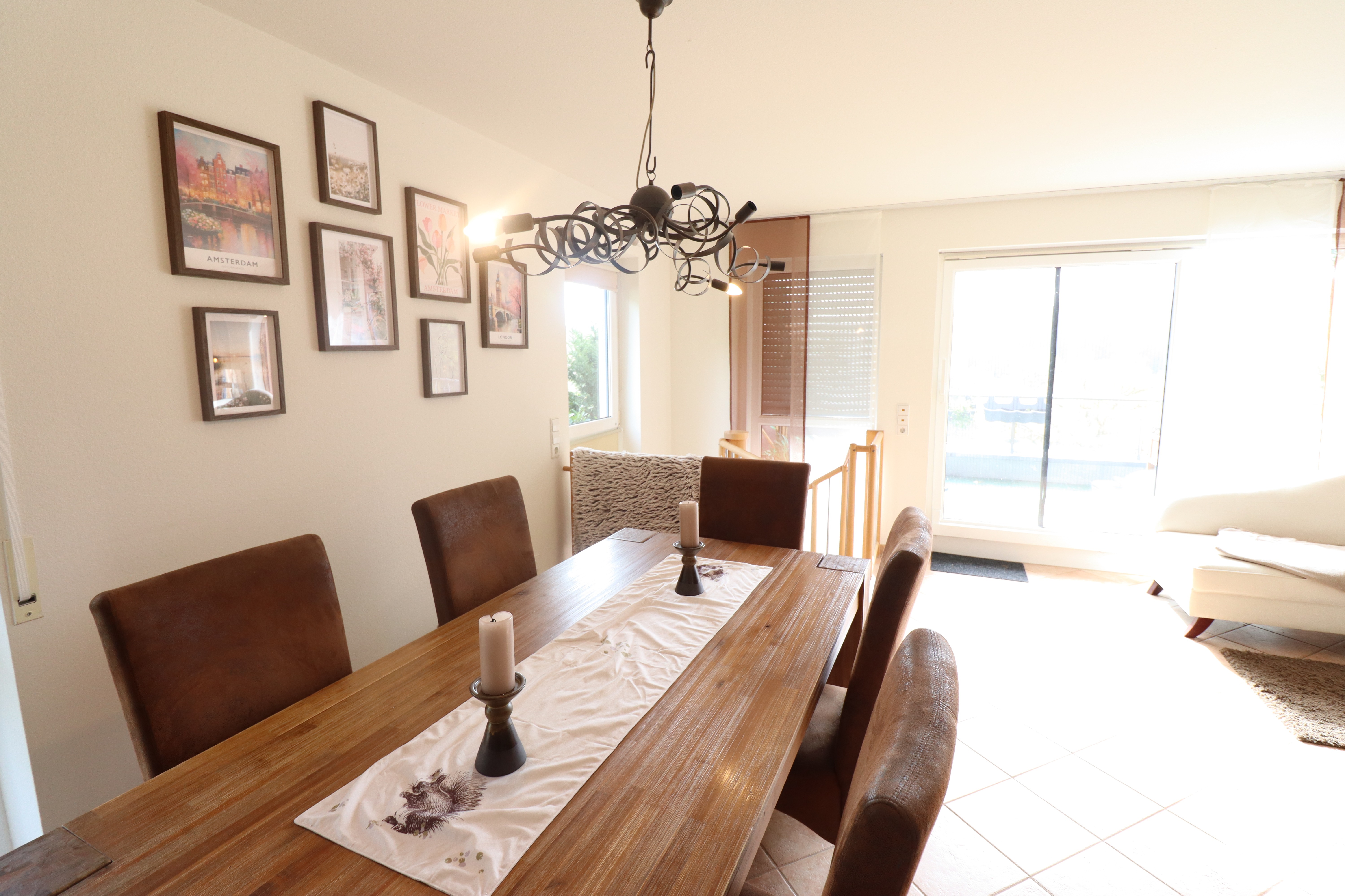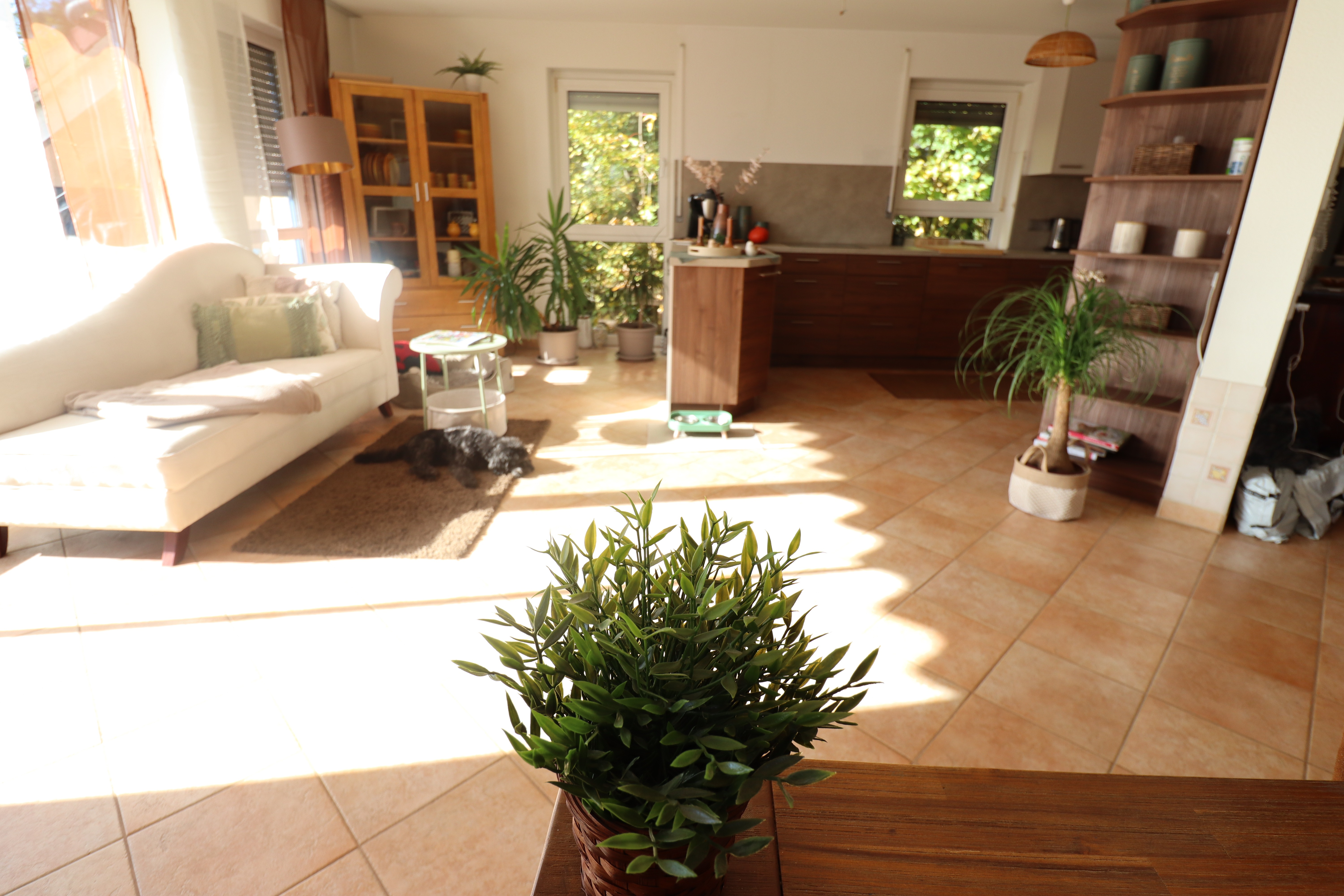 Großzügig geschnitten, lichtdurchflutet und mit direktem Zugang zu den Außenbereichen. Der Kaminofen sorgt in den Wintermonaten für eine angenehme Wohnatmosphäre.