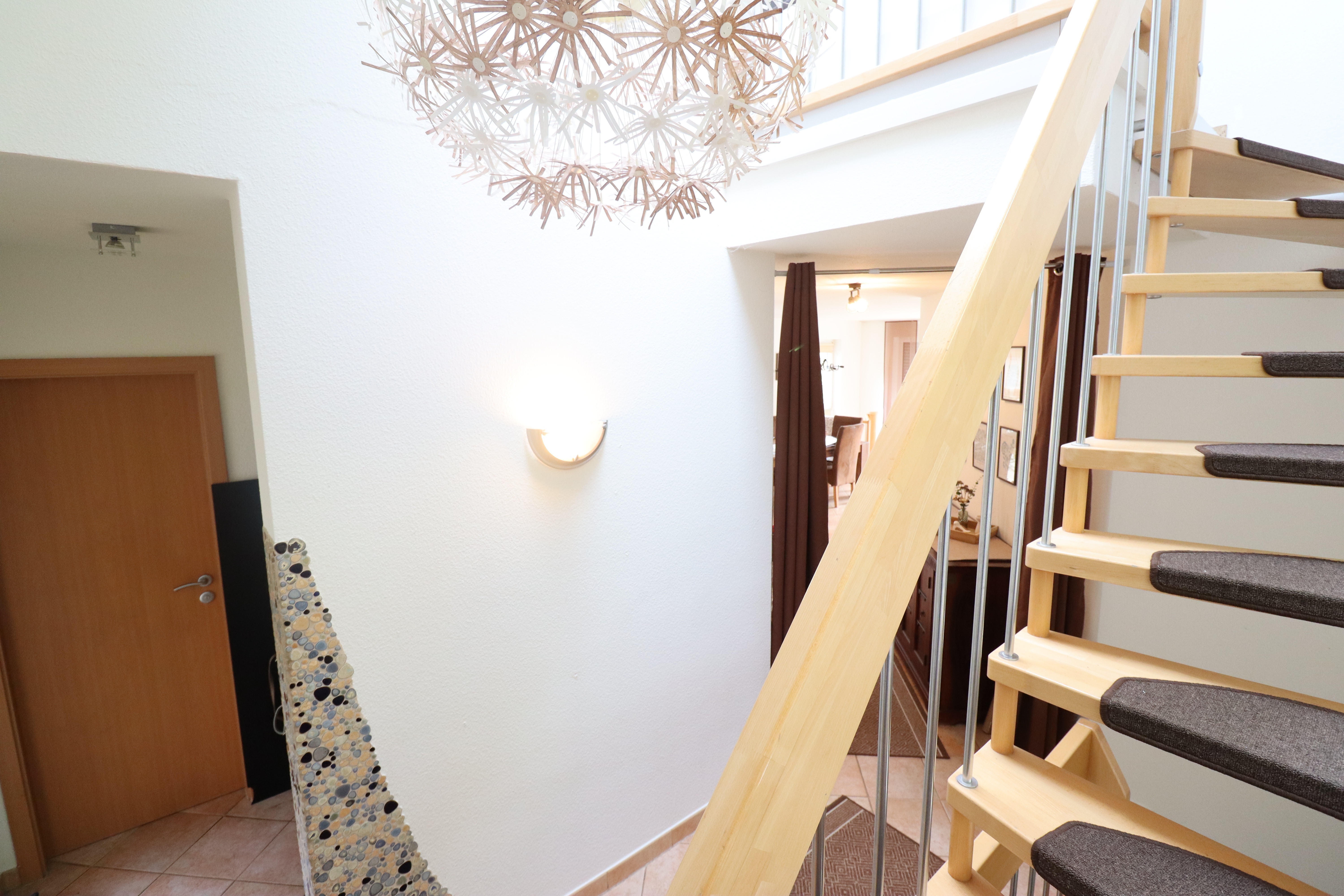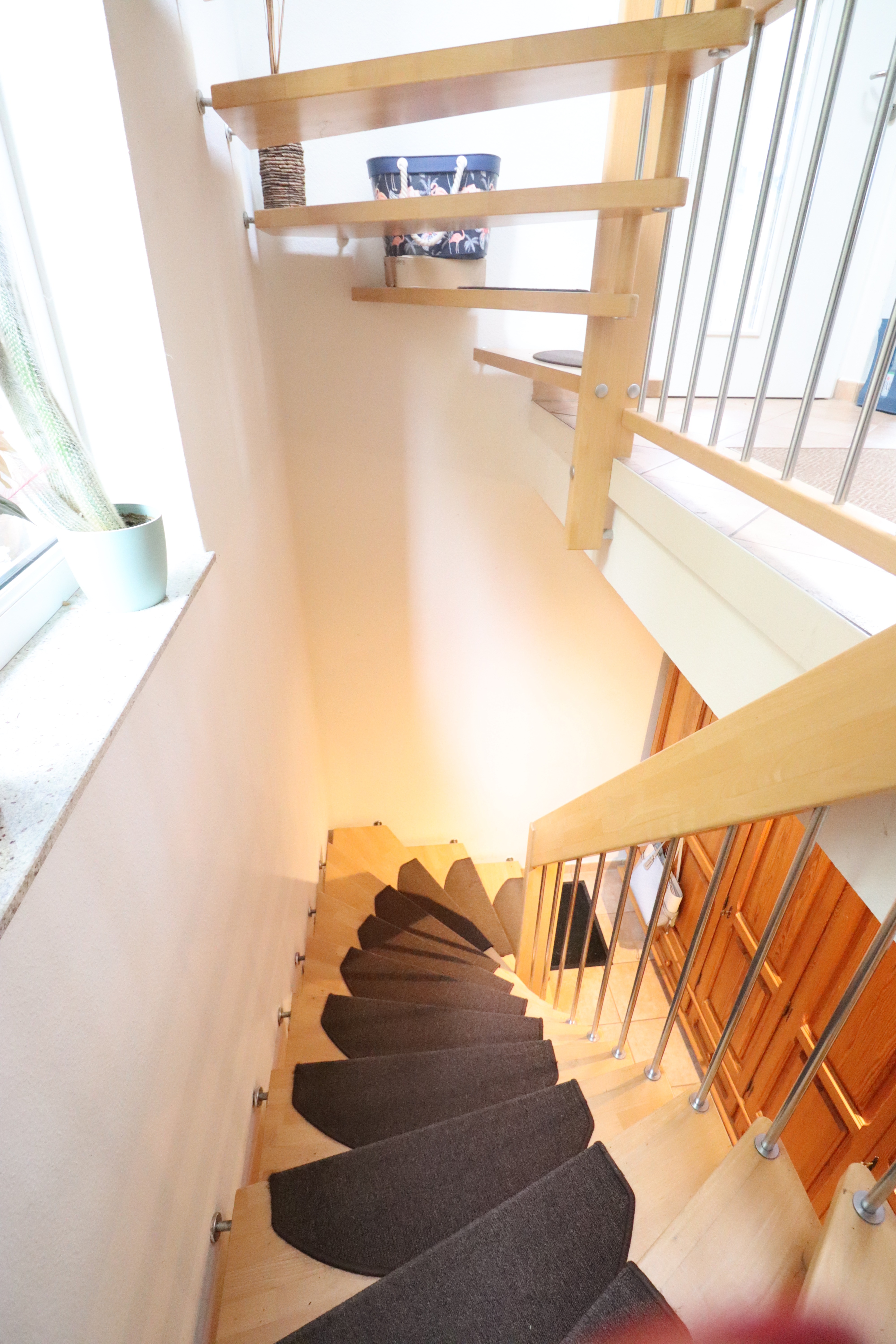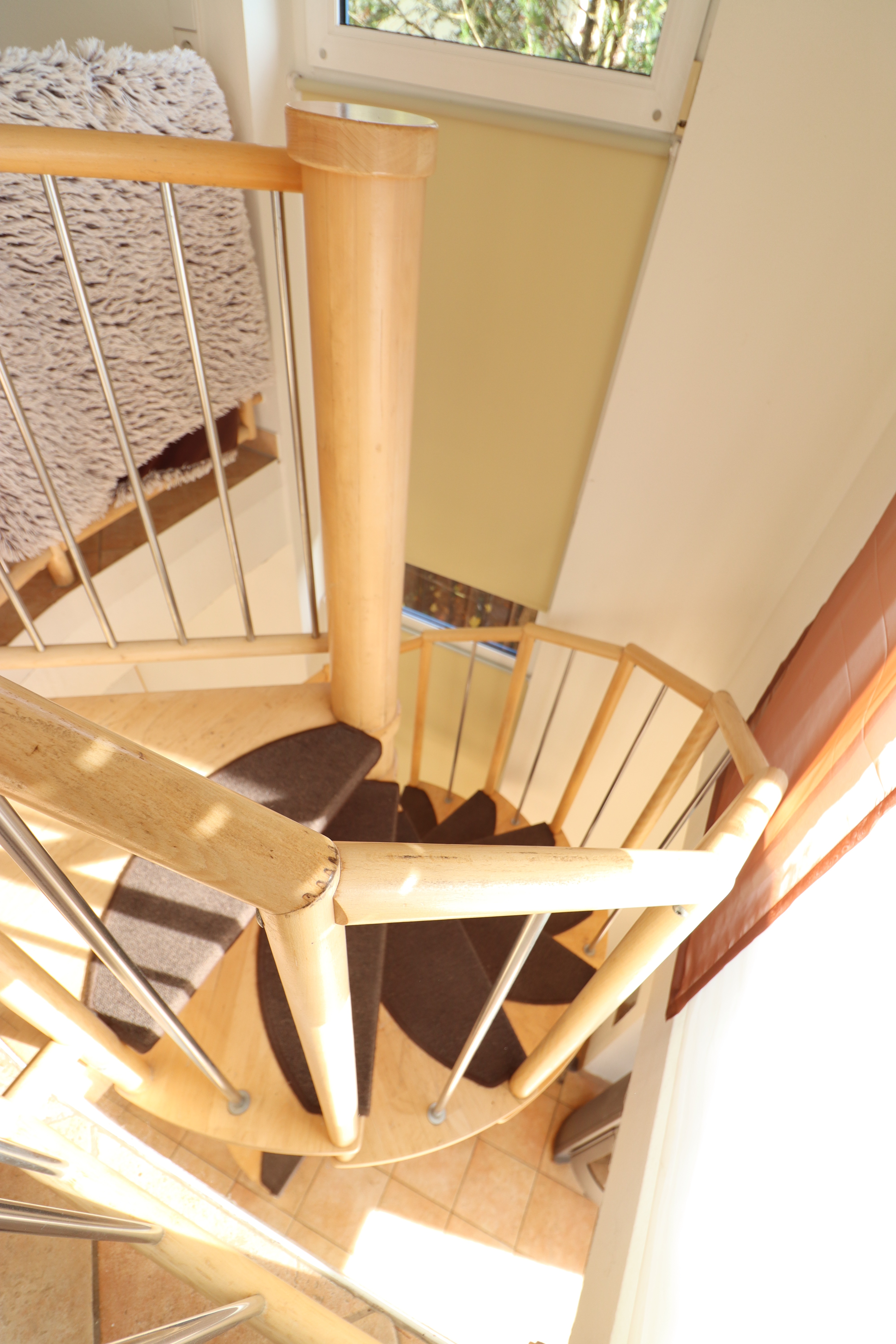 • Wendeltreppe mit Verbindung zum Garten und Kaminzimmer.