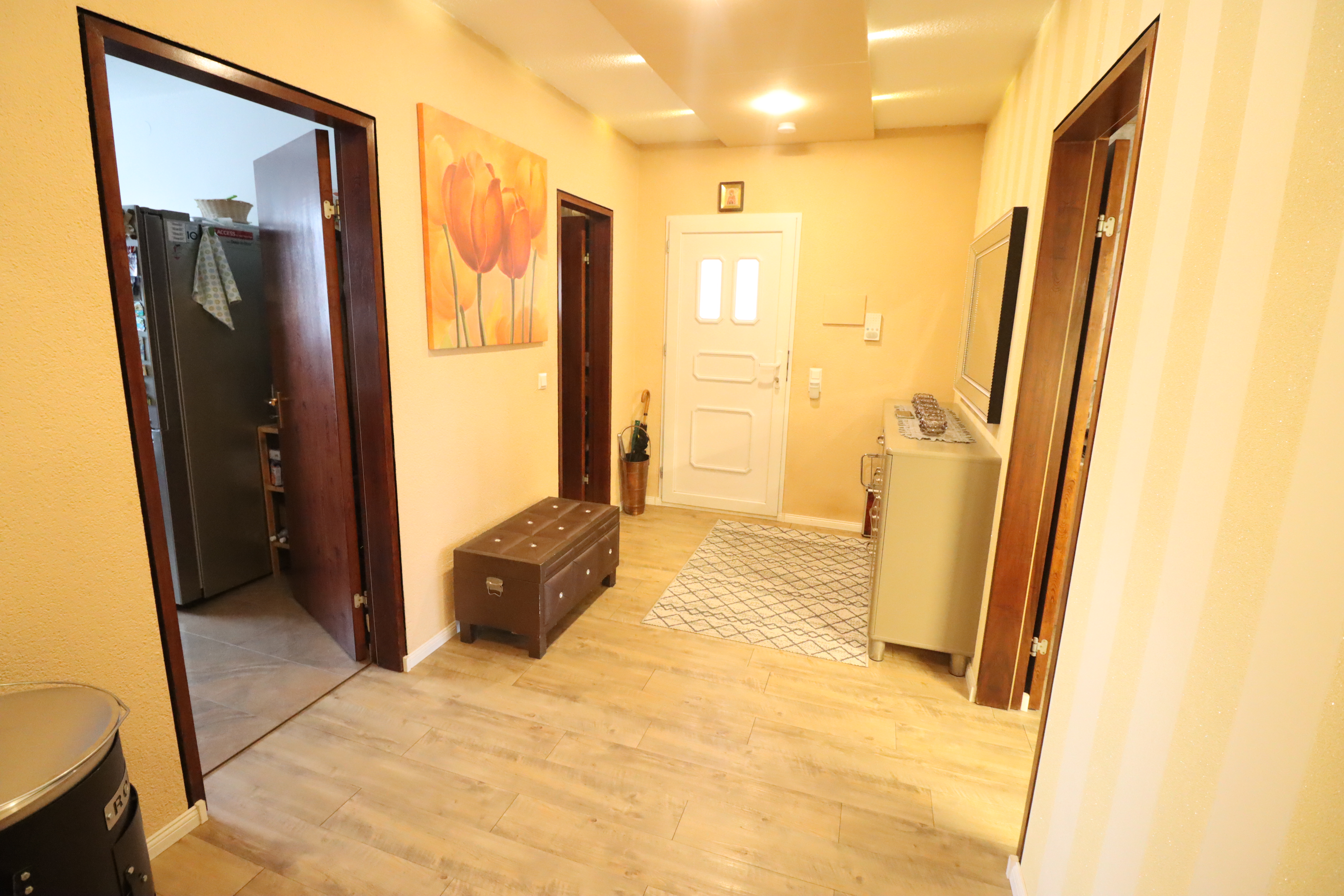 Ein besonderes Merkmal ist der Zugang über einen überdachten, aber offenen Flurbereich (Laubengang), der nicht nur Schutz vor Witterungseinflüssen bietet, sondern auch eine freundliche und helle Atmosphäre schafft. Das Gebäude wurde 1971 erbaut und vor etwa einem Jahr umfassend modernisiert. Zudem erhielt das gesamte Gebäude einen frischen Fassadenanstrich.