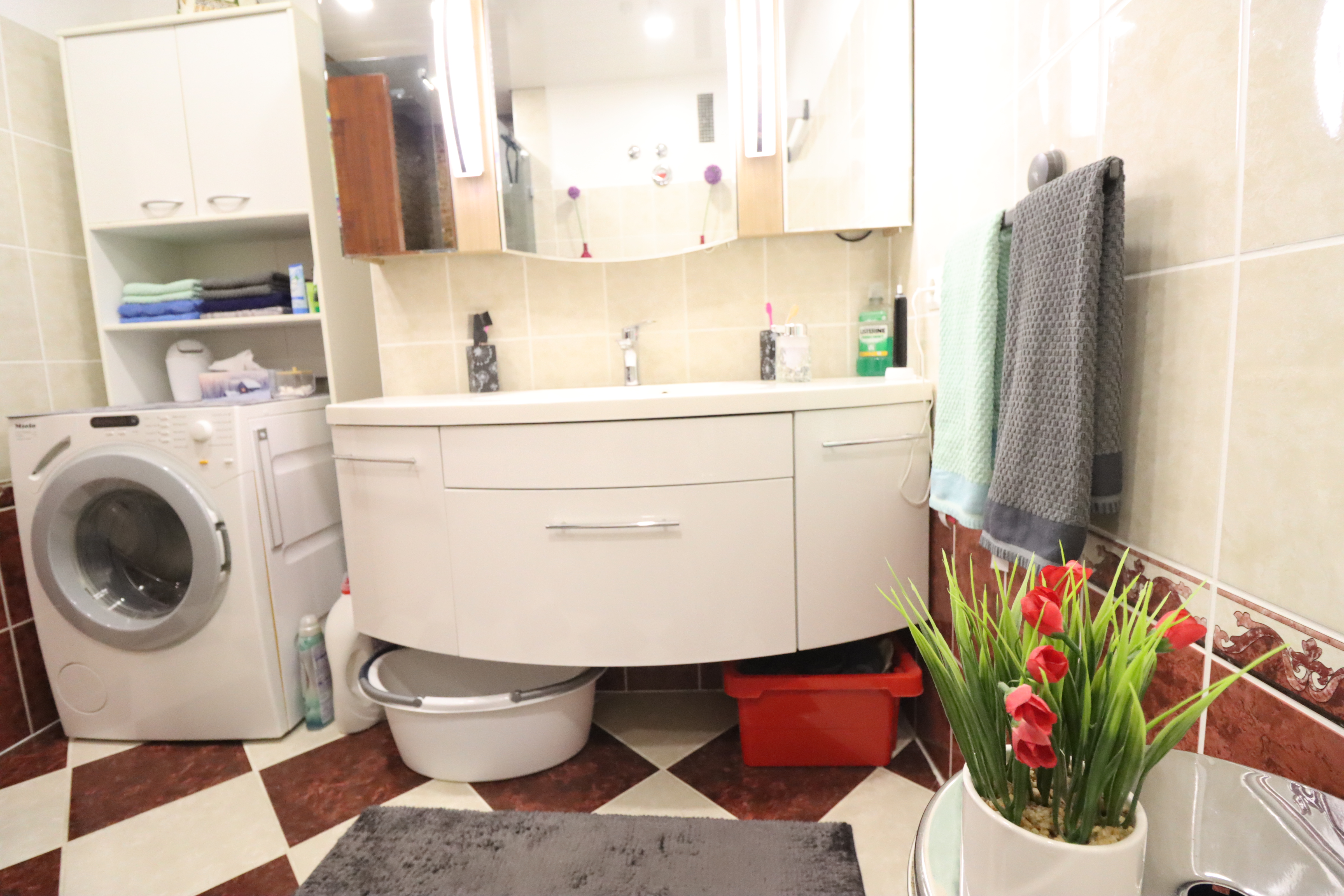 – Waschmaschinenanschluss im Badezimmer
