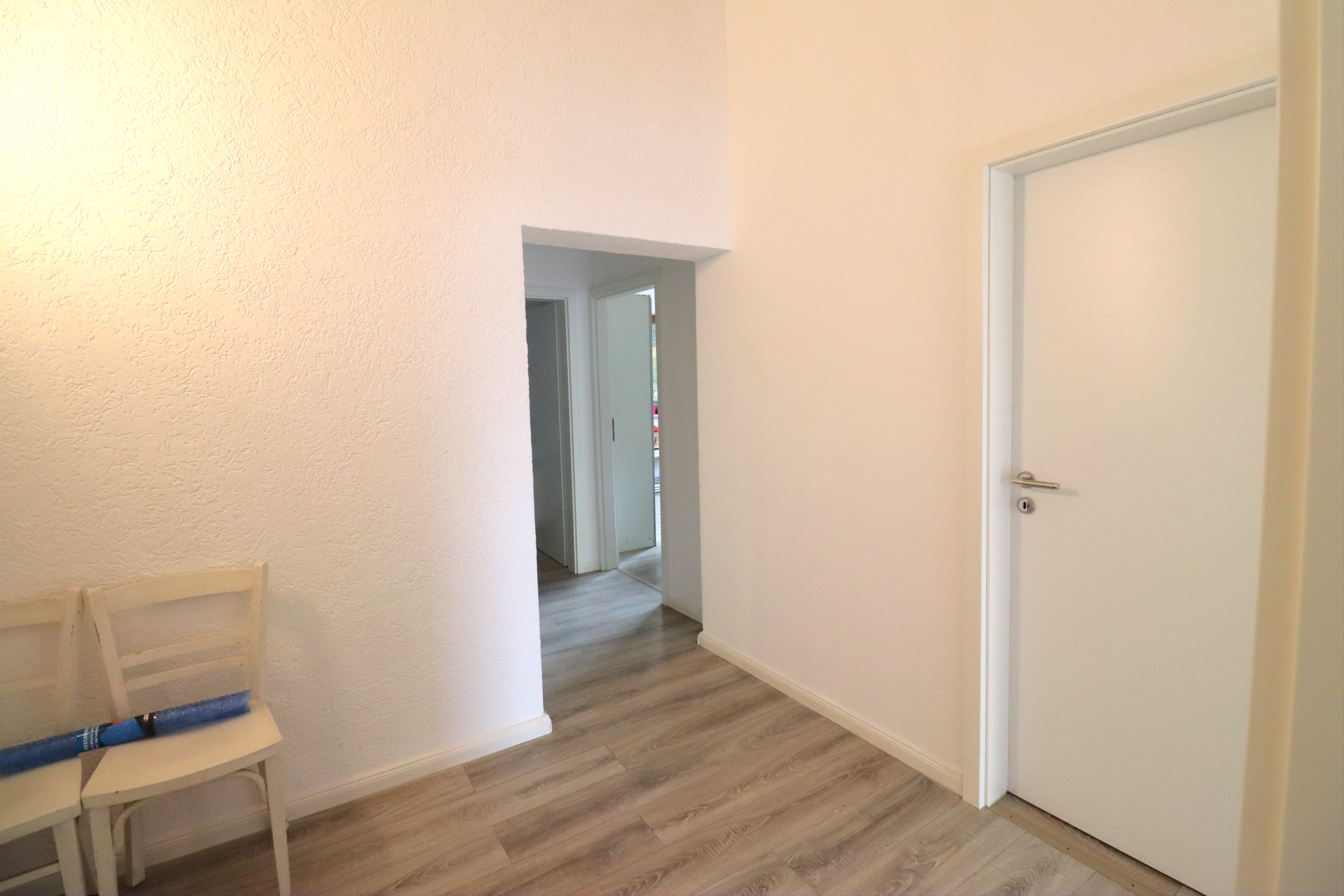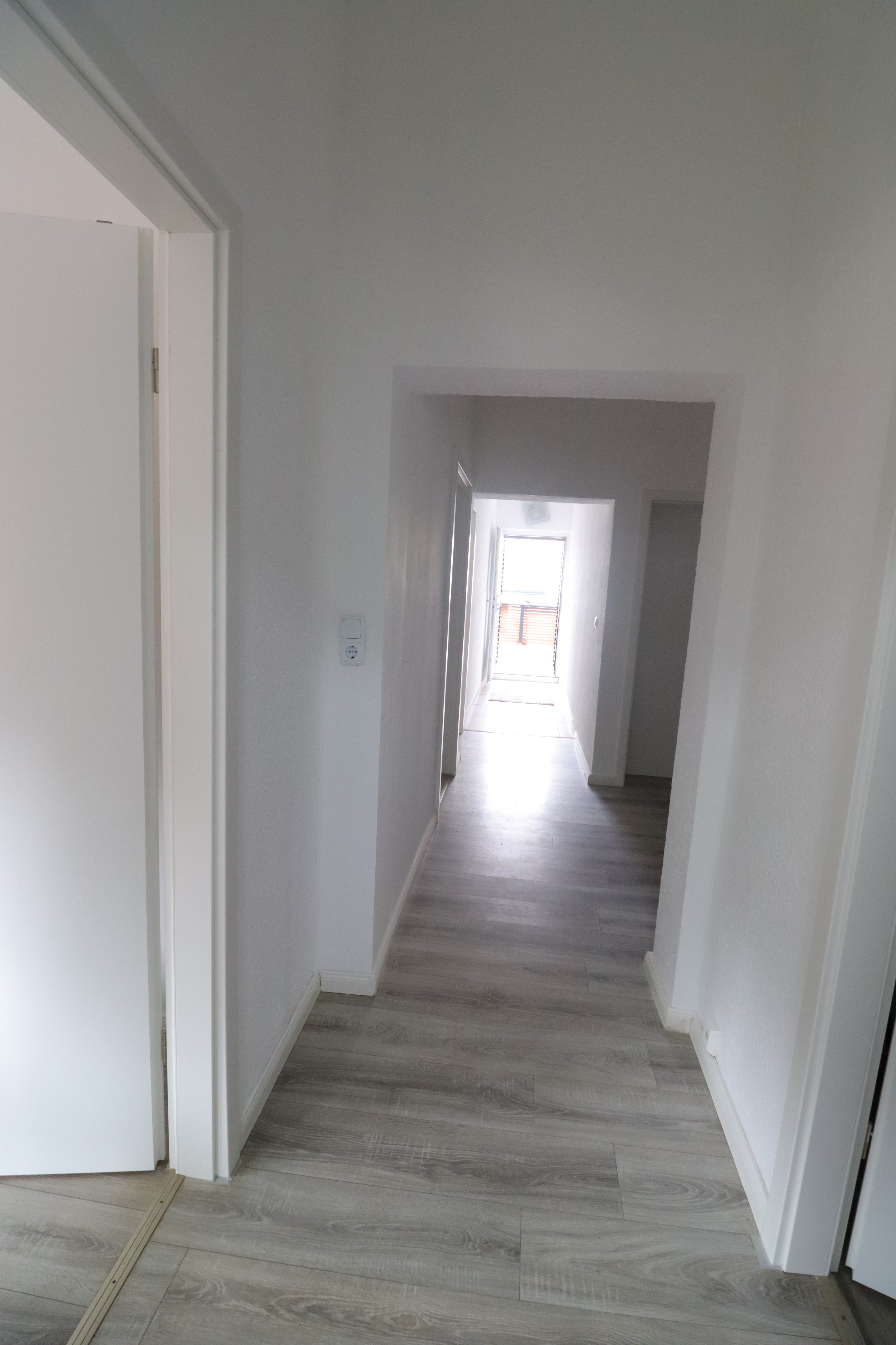 Flur · Wohnzimmer mit Durchgang zur Küche · Schlafzimmer · Bad · zwei Abstellräume