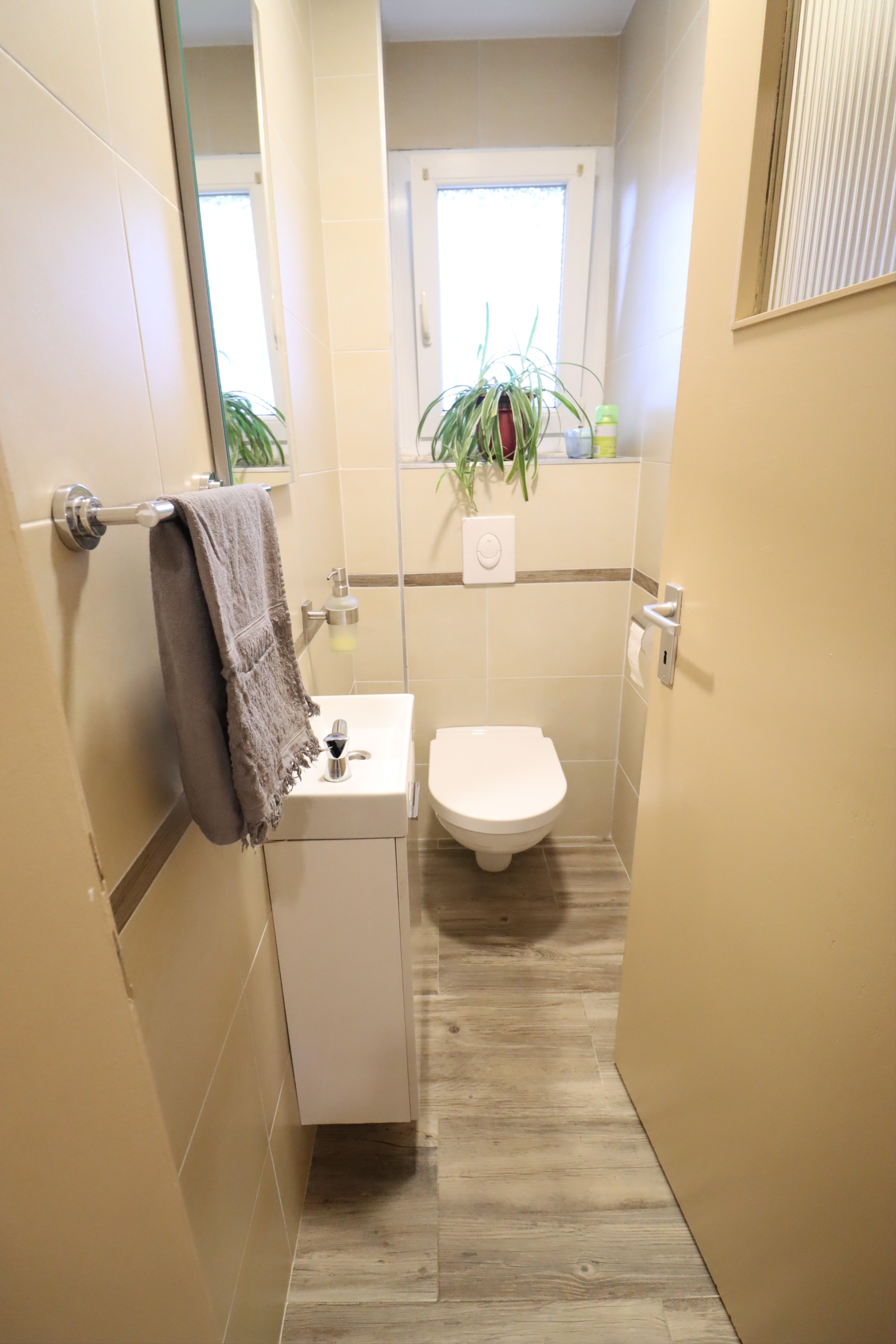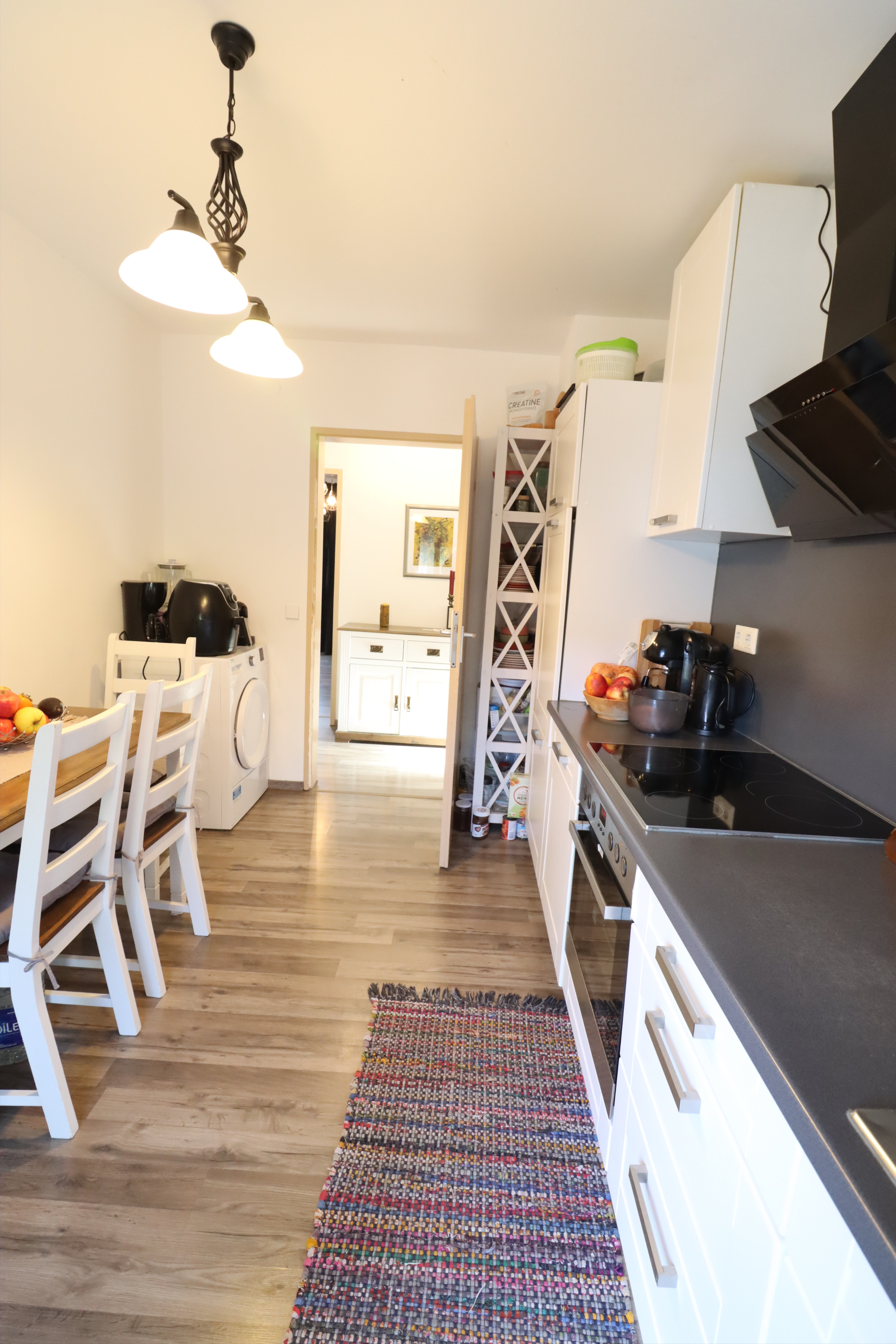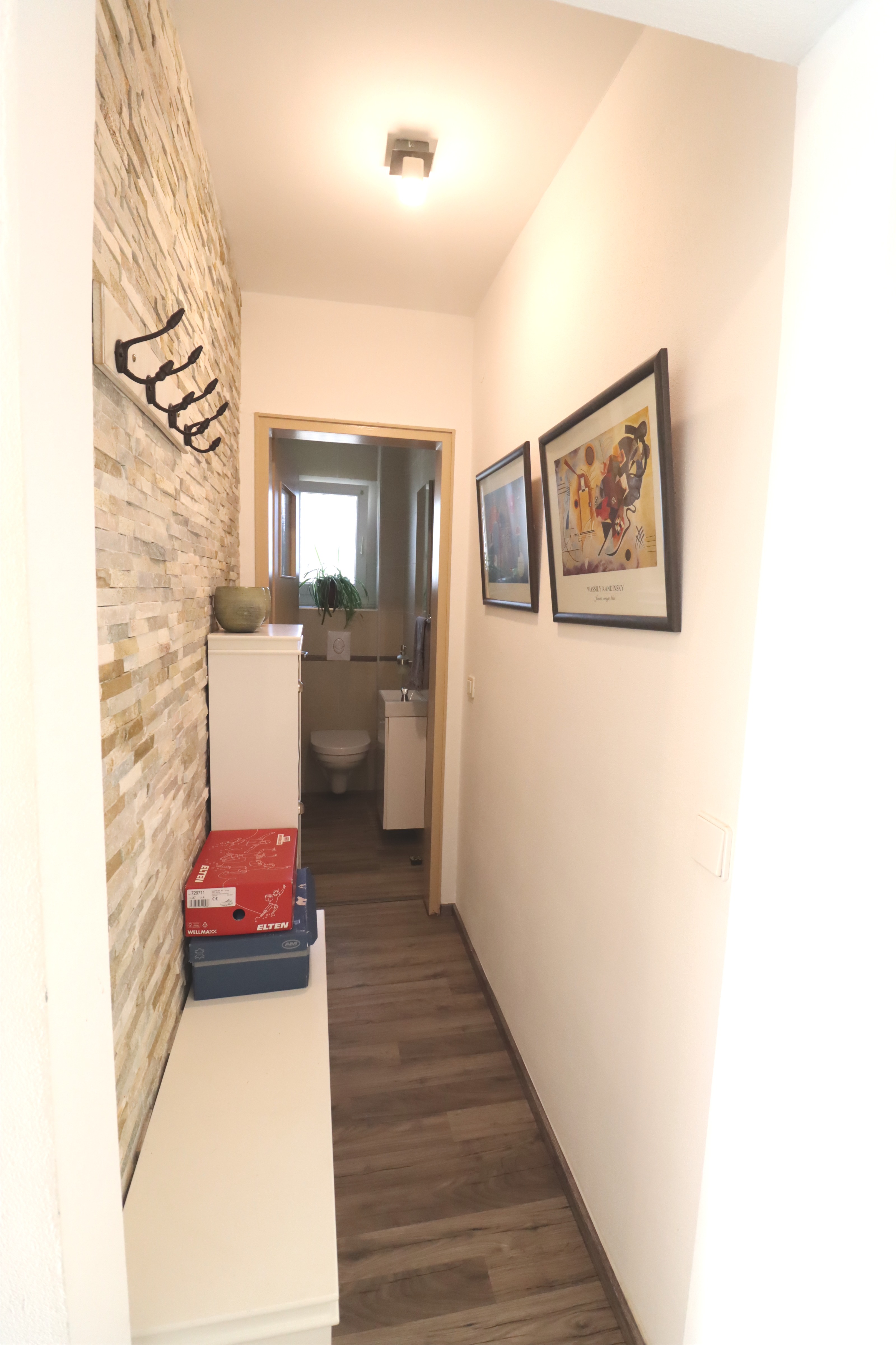 Die umfassende Renovierung beinhaltete neben der Erneuerung von Badezimmer und Gäste-WC auch die Erneuerung der Böden, Decken und Wände sowie die gesamte Elektrik, sodass die Wohnung einen modernen und gepflegten Eindruck vermittelt.