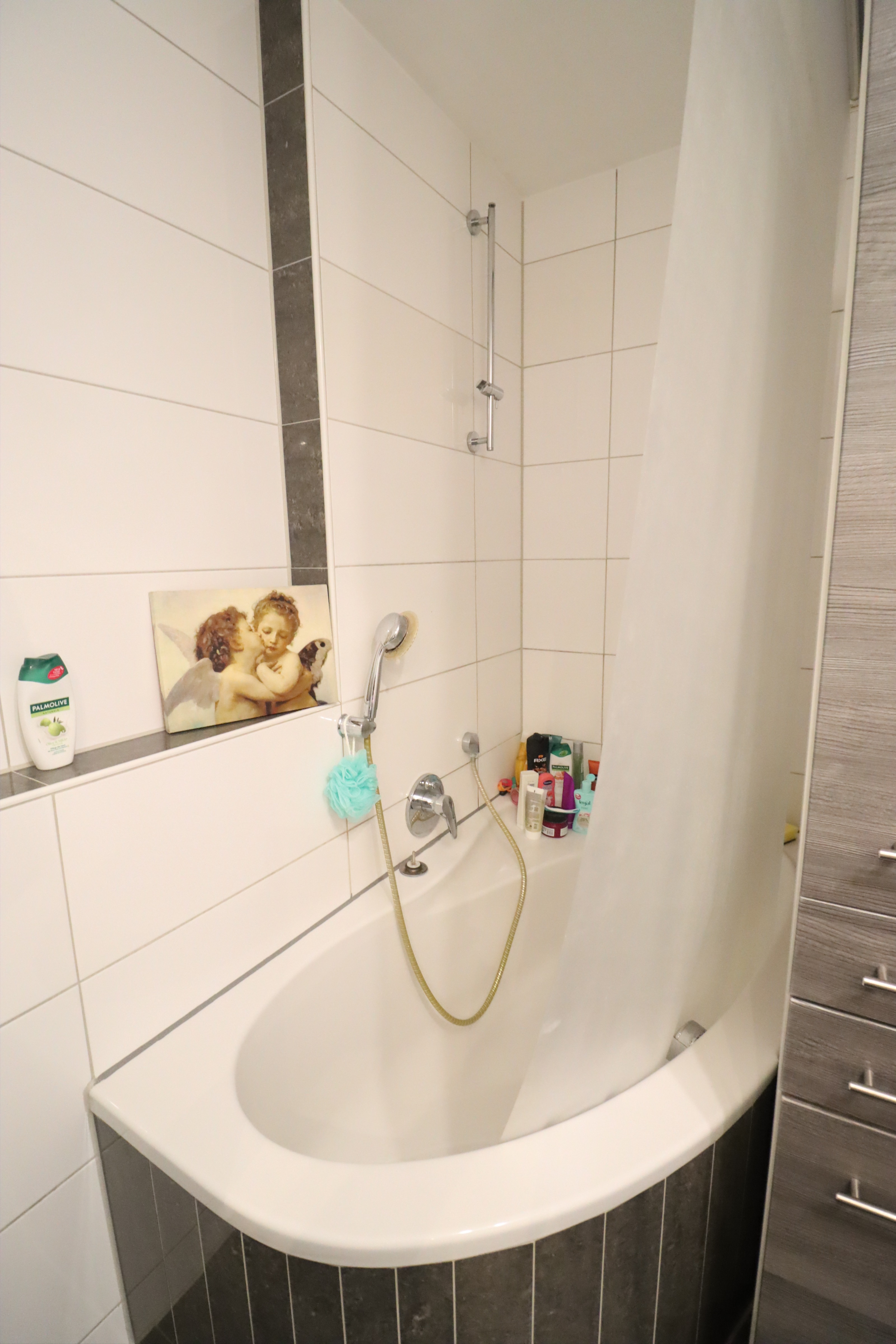 • Innenliegendes Badezimmer mit Badewanne und Waschmaschinenanschluss